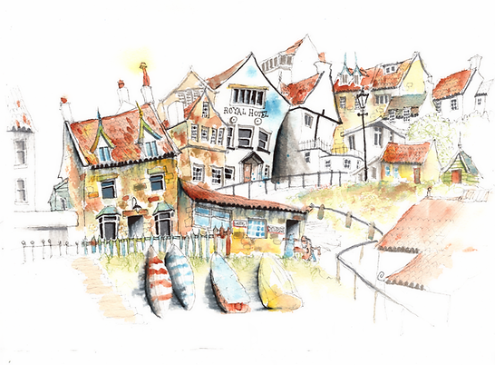 Tim Gomersall is inspired by the landscape, people, and wildlife of the North. He usually works with pen and watercolour, capturing fleeting impressions of places as he experiences them in real-time. This approach infuses Tim’s pieces with a vibrant, intense energy, which reveals his unique way of seeing and his deep connection to place. Tim’s work has appeared in many galleries, and he is regularly commissioned as an illustrator for private and commercial clients.
